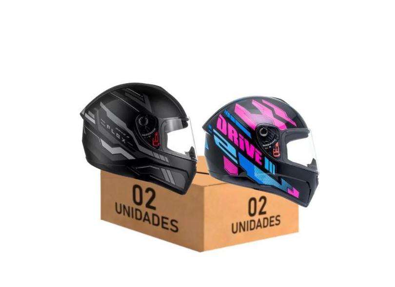 Kit 2 Capacete Fly Drive 2 Flex Preto Grafite e Atitude Rosa, 60/58