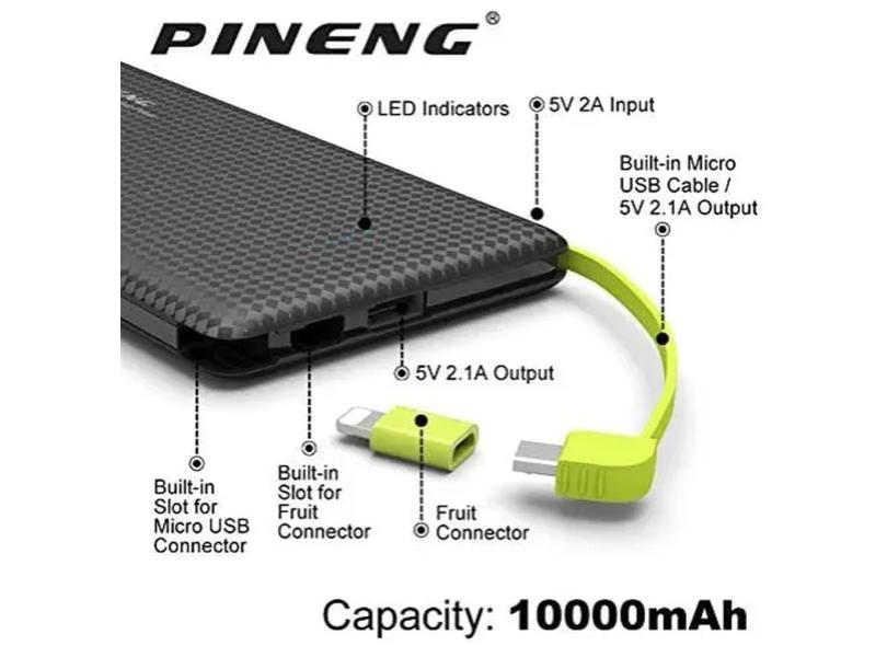 Carregador bateria Portátil Power Bank Pineng Pn-951 Slim 10000 mah