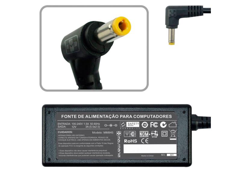 Fonte Carregador Mais Mania Mini Pc 12V 3A 5.5X2.5 36W