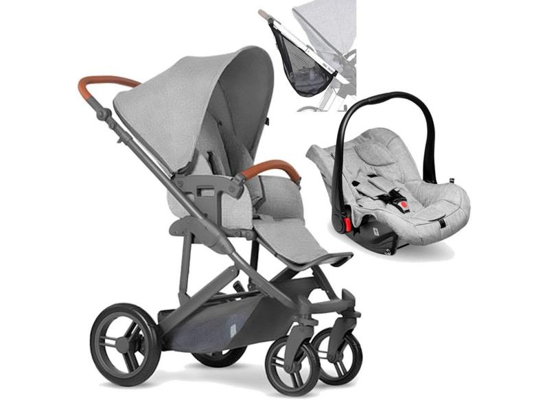 Carrinho de Bebê ABC Design Merano4 com Bebe Conforto Bolsa Shopping Bag Woven Grey