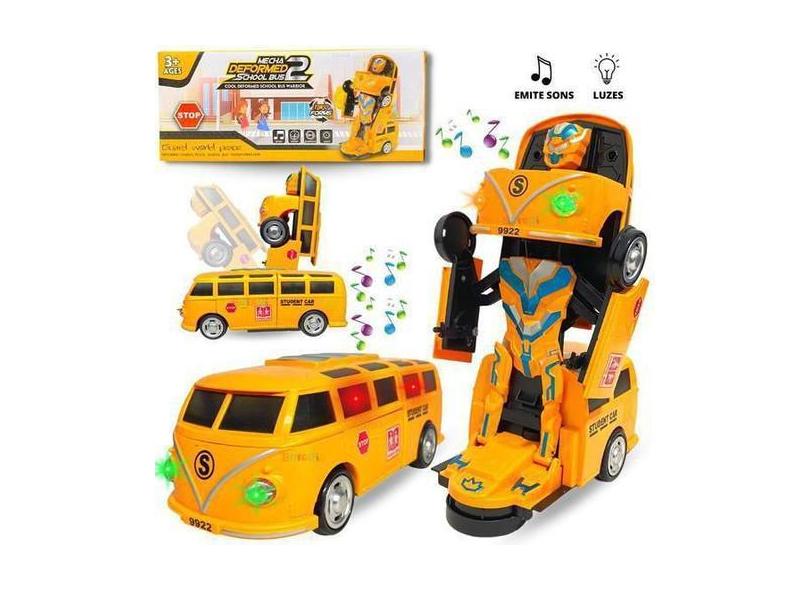 Brinquedo Carrinho Transformers Vira Robô Kombi Escolar Bate Volta So