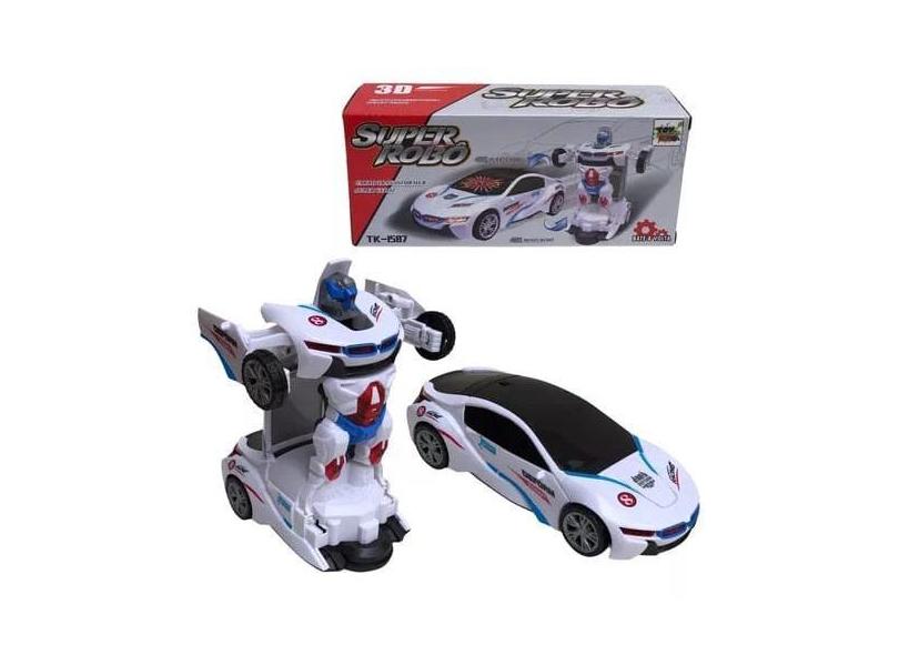 Brinquedo Carrinho Transformers Vira Robô Luz Som Bate Volta- Branco