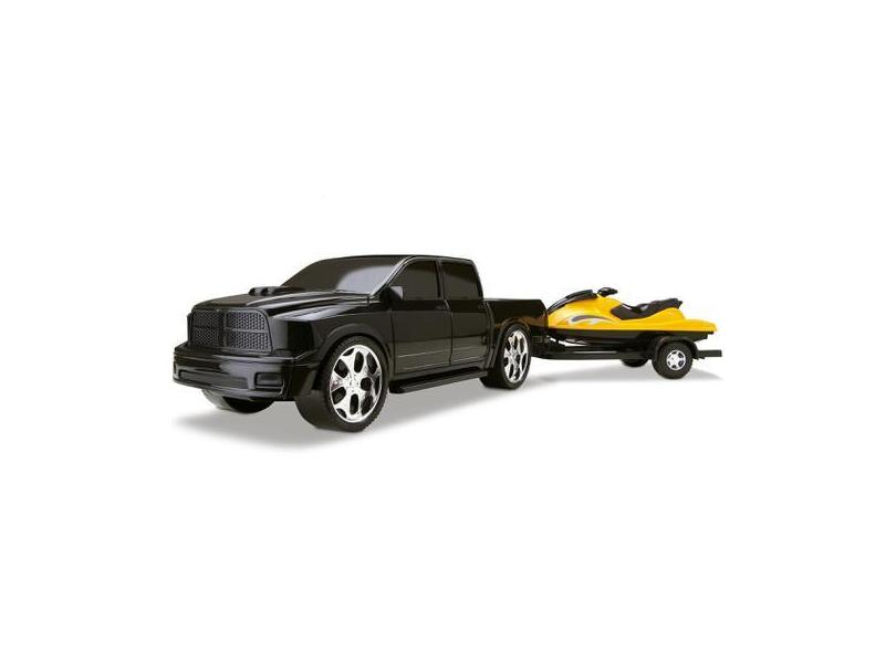O menor preço encontrado no Brasil para Carrinho Pick Up Scorpion Dodge Ram Com Jet Ski - Silmar Brinquedos atualmente é R$ 47,99.