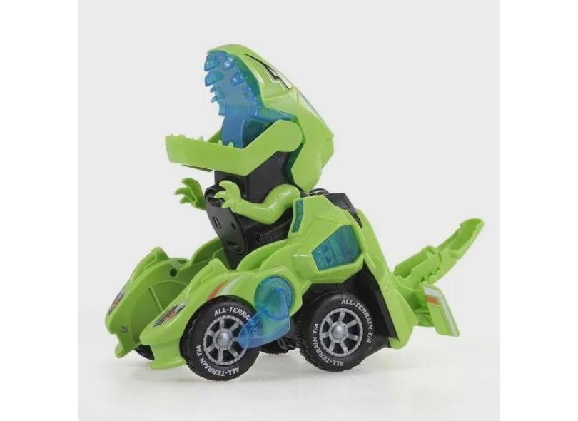 Carro Transforma Vira Robô Dinossauro Bate Volta Som Luz Carrinho de Brinquedo Musical( Verde)