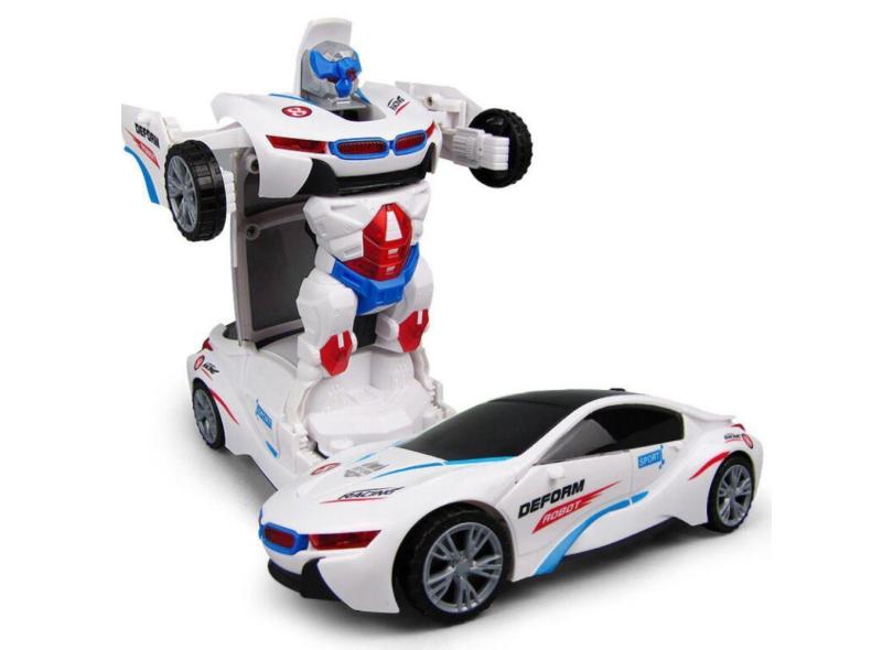 Carro Vira Robo c/ Som Luz Carrinho Bmw Brinquedo Branco