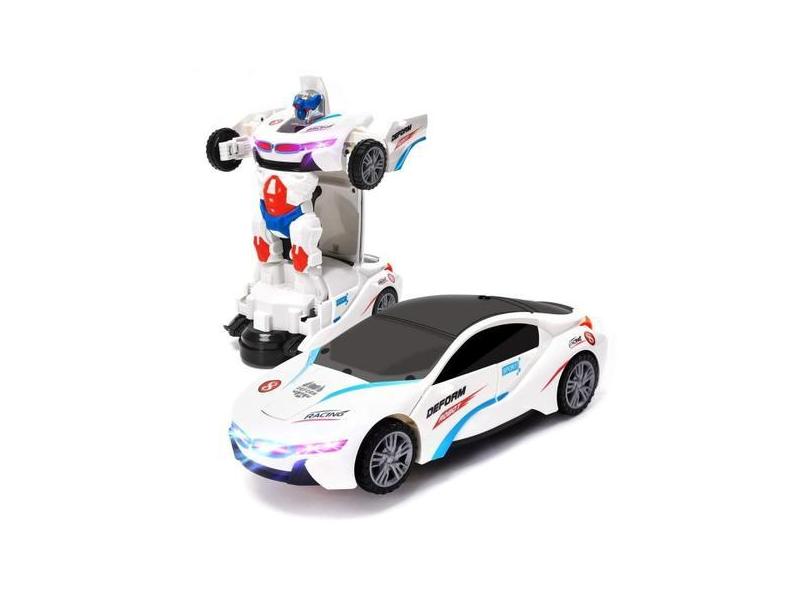 Carro Vira Robo Som Luz Carrinho Brinquedo Menino - Branco - Sp All
