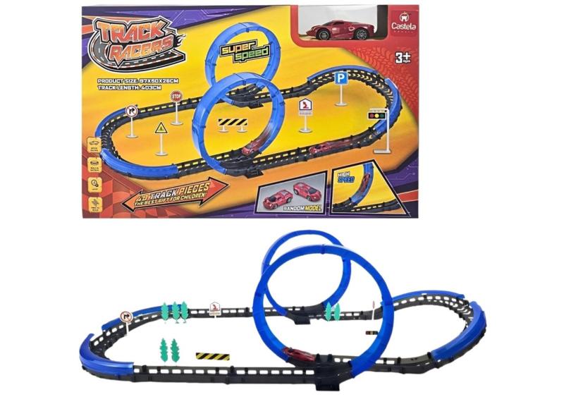 Pista de corrida Carrinho Brinquedo 2 Loopings Track Racers - Castela
