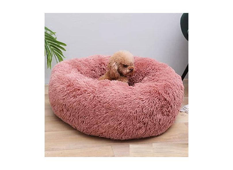 Cama calmante para cães e gatos, cama anti-ansiedade donut aquecimento aconchegante macio cama redonda para cães e gatos, cama macia fofa de pelúcia sintética para cães e gatos grandes, pequenos e médios diâmetro 71 cm