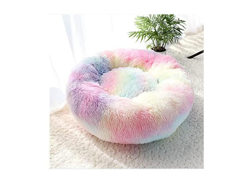 Cama calmante para cães e gatos, cama redonda lavável antiderrapante fofa de pelúcia falsa donut cama de gato para cães pequenos, médios e grandes - diâmetro inferior à prova d'água 40 cm