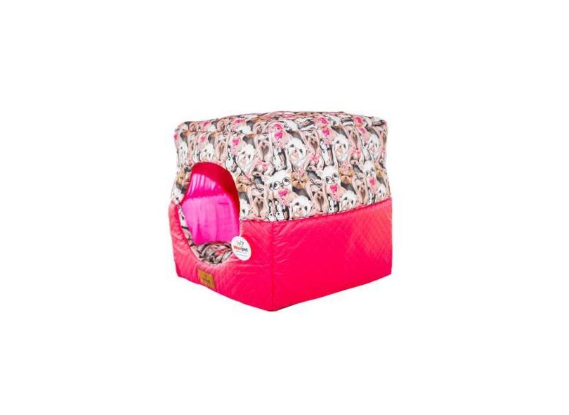 Cama Para Cachorro Toca Quadrada Em Material Sintético + Poliéster Ros