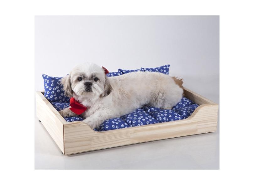 Caminha Cama Pet de Madeira e Colchão Patinha Cachorro