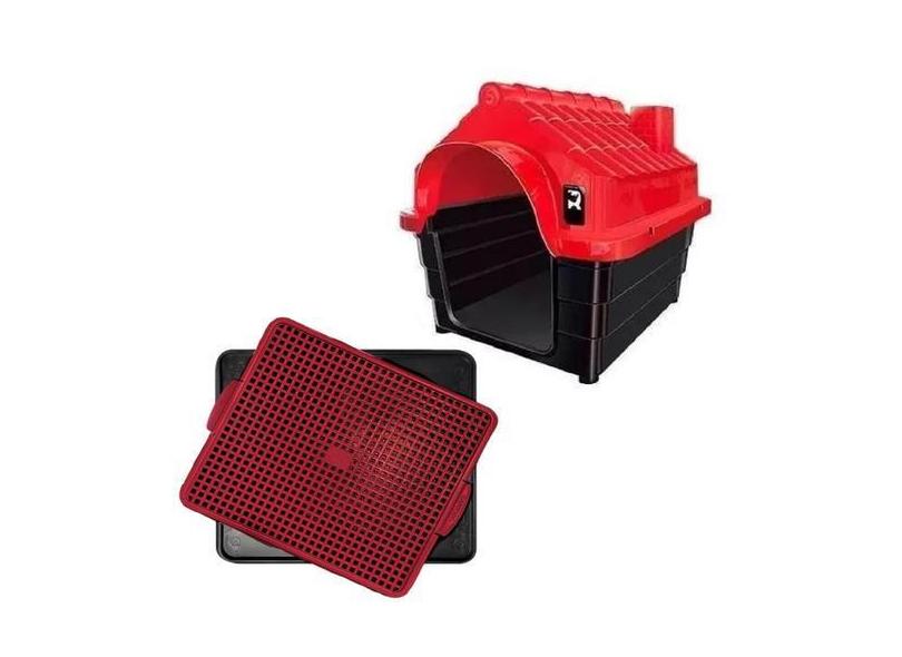 Casa Cachorro Gato N2 Pequeno + Tapete Higienico Vermelho - MecPet