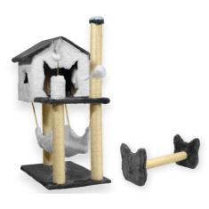 Casa Para Gatos Com Dois Andares Rede E Brinquedo Bolinha Poste Sisal