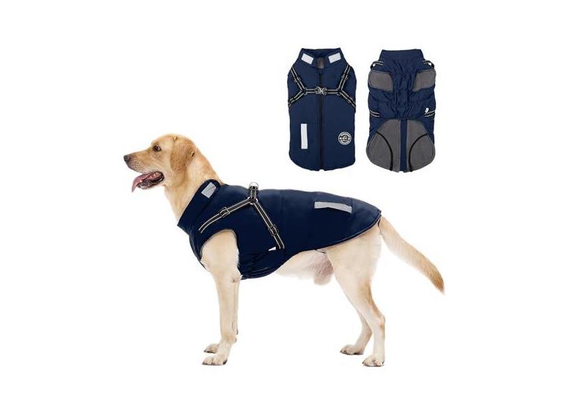 Casaco para cães: Casaco de inverno quente para cães - Jaqueta de lã para cães com arnês embutido, casaco para clima frio para cães com listras refletivas, colete impermeável para cães, casacos para
