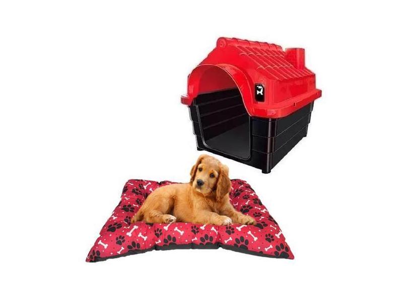 Casinha Plástica Pet Cães E Gatos N3 + Cama Acolchoada Rosa - Mecpet