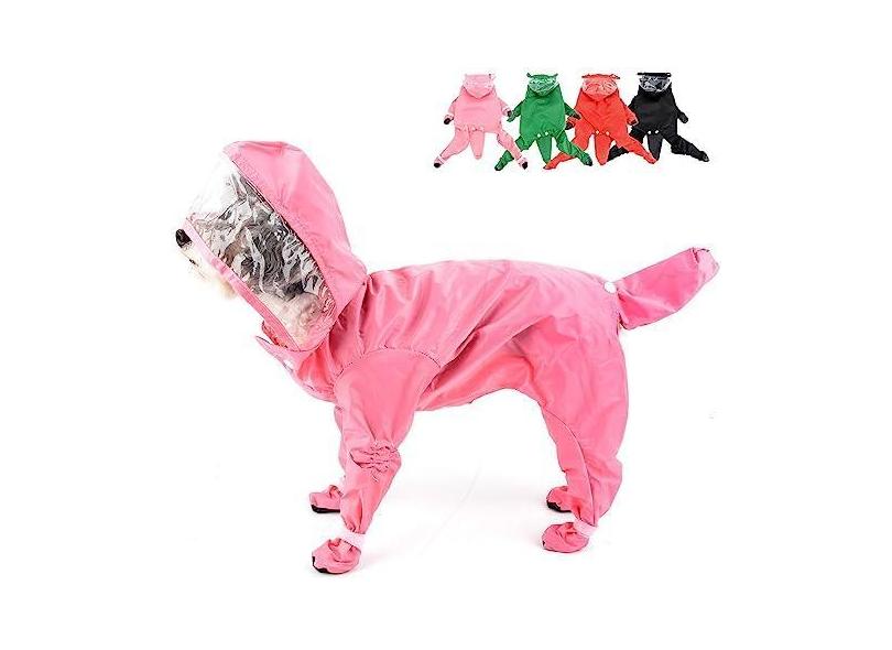 Zunea Capa de chuva impermeável para cães com capuz para cães pequenos, poncho de chuva com botas de chuva para filhotes, com capuz, roupa de chuva, jaqueta de chuva para animais de estimação de