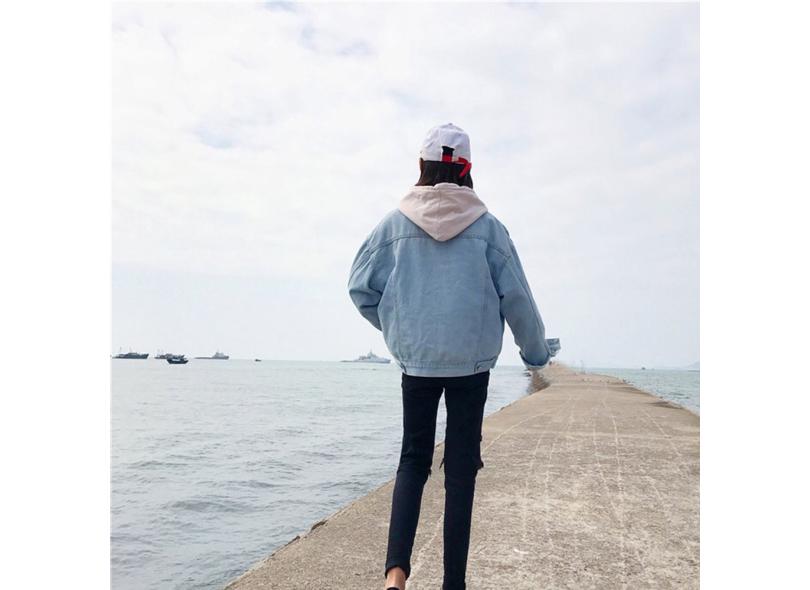 Casaco coreano solto de manga comprida com fivela única jaqueta jeans feminino casaco feminino