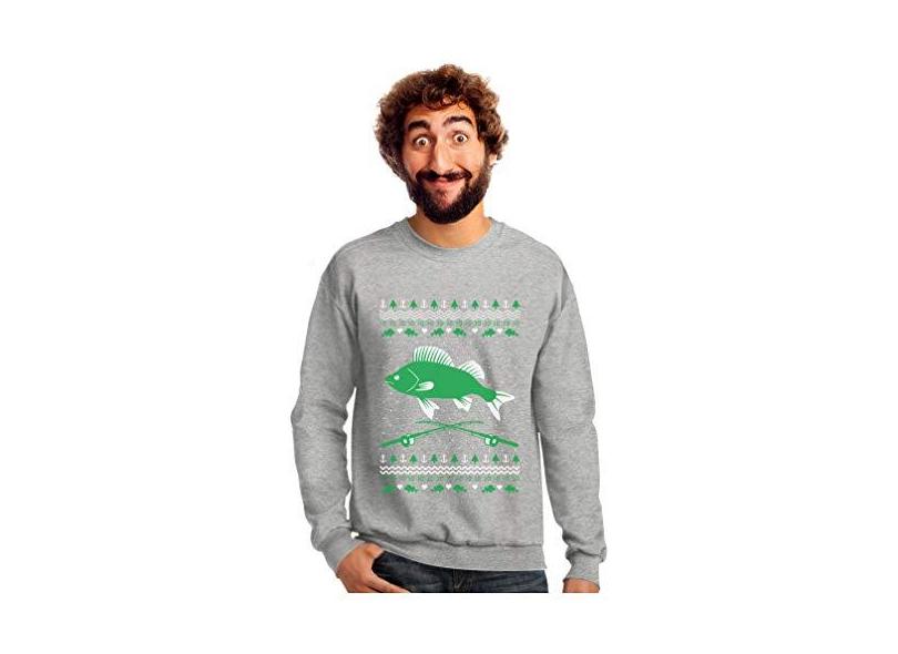 Suéter de pesca feio de Natal presente para pescadores moletom de Natal, , M