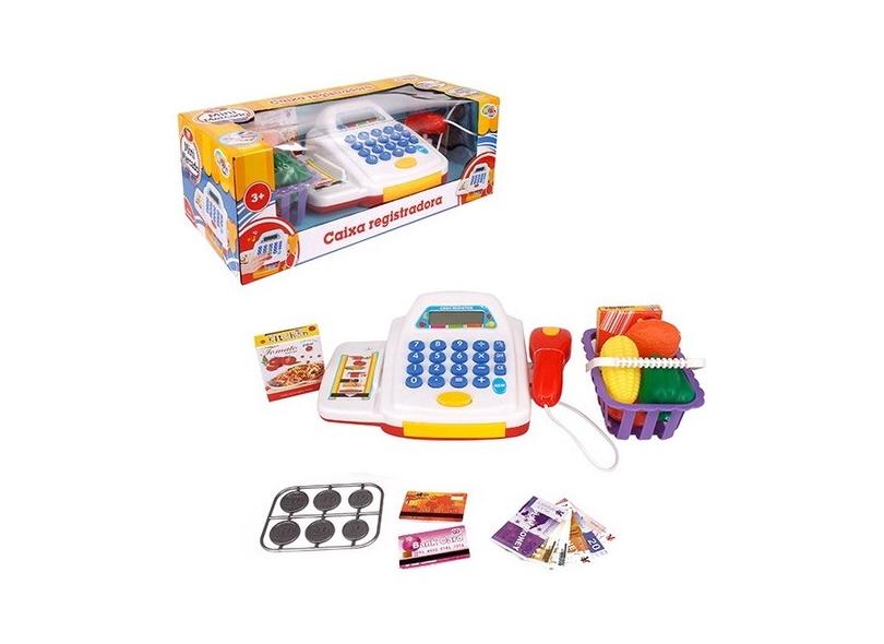Brinquedo Caixa Registradora Com Som e Luz Mini Mercado c/ Cartão de Credito, Moedinhas, Dinheiro e Acessórios