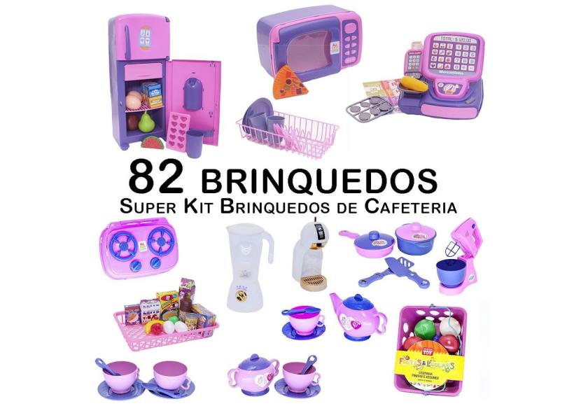 Kit Café Infantil Registradora Geladeira Microondas 82pç