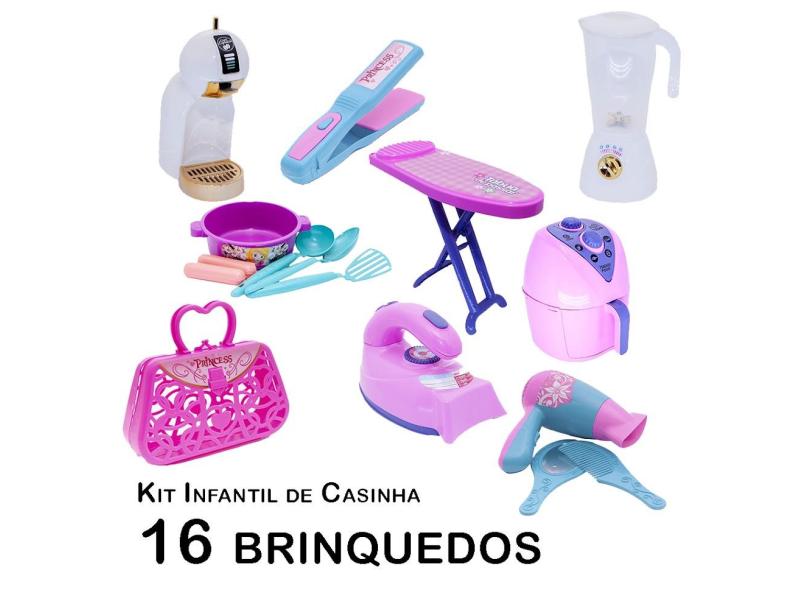 Kit Casinha Infantil Cafeteira Ferro Tábua Secador 16pç