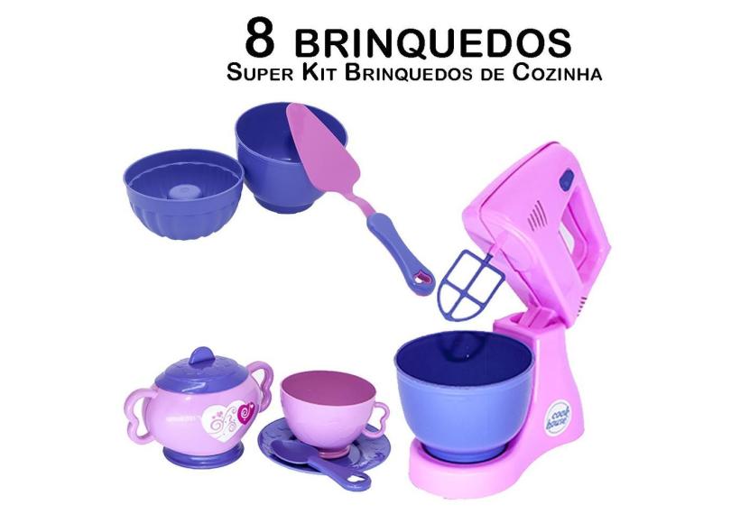 Kit Cozinha Infantil Batedeira Forminhas Xícaras Pires 8pç