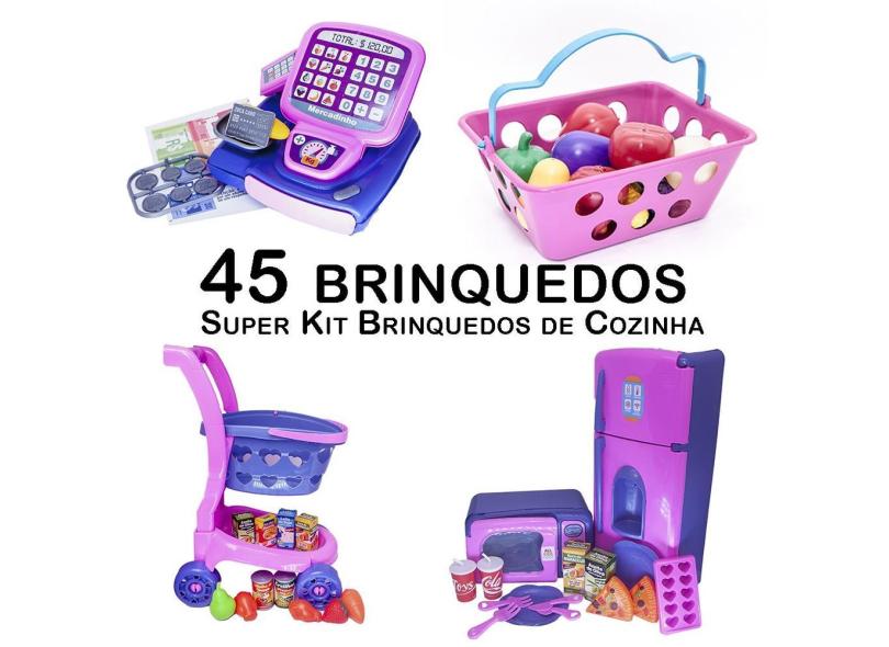 Kit Cozinha Infantil Carrinho Caixa Geladeira Microondas 45p