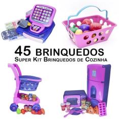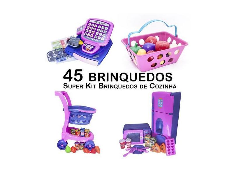 O menor preço encontrado no Brasil para Kit Cozinha Infantil Carrinho Caixa Geladeira Microondas 45P - Altimar atualmente é R$ 315,77.