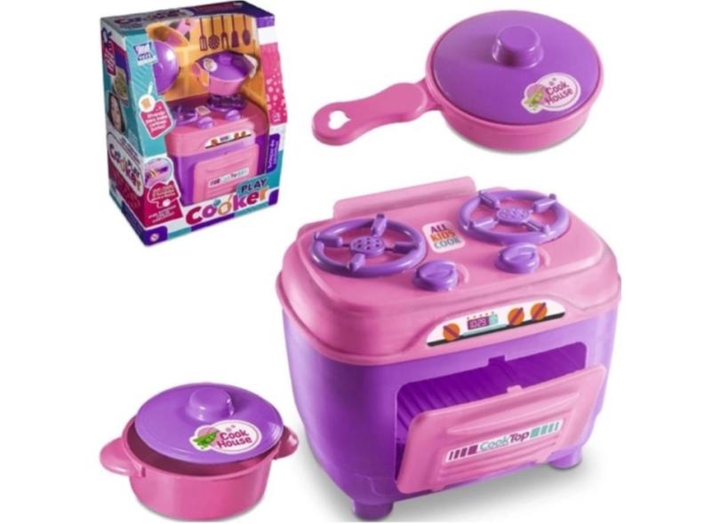 Kit Cozinha Infantil com 11 Brinquedos Fogão, Forno, Panelinhas com tampa, Pratos, Copos e Talheres Faz de conta