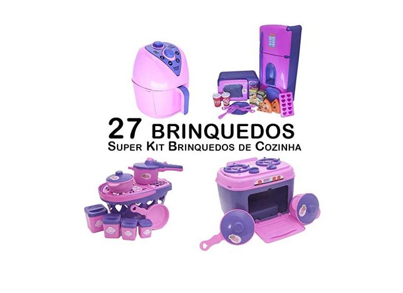 O menor preço encontrado no Brasil para Kit Cozinha Infantil Geladeira Microondas Panelas Fogão 27pç atualmente é R$ 260,91.