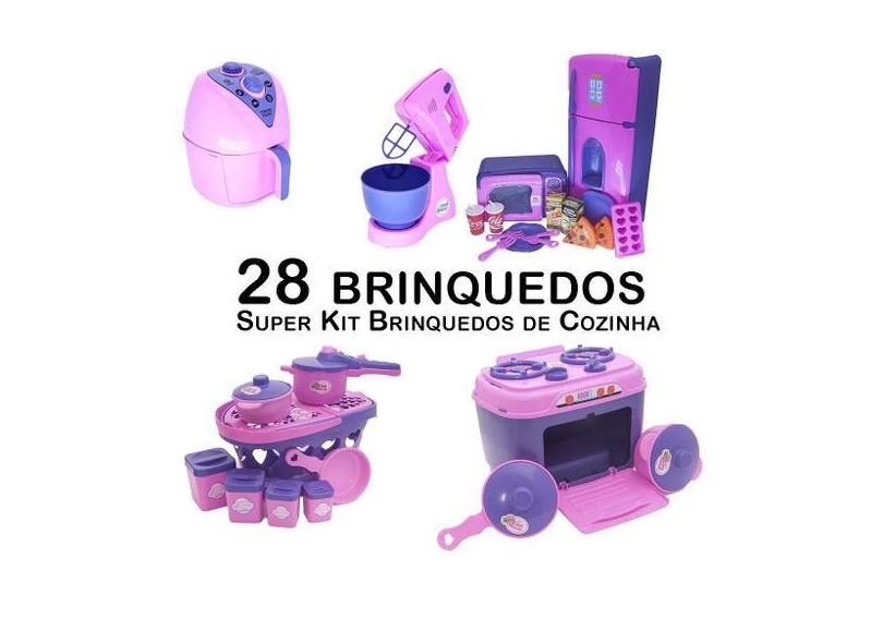 Kit Cozinha Infantil Geladeira Microondas Panelas Fogão 28Pç - Altimar