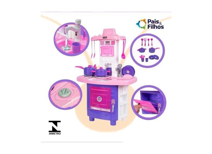 Kit Cozinha Pia E Fogão Infantil De Brinquedo Rosa Sai Água - Pais & F