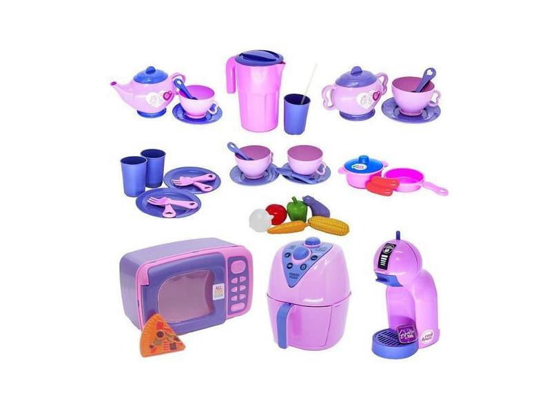 O menor preço encontrado no Brasil para Kit Infantil Microondas Legumes Cozinha Panelas Louça 38Pç - Altimar atualmente é R$ 176,12.