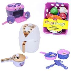 Kit Menina Infantil Cozinha Fogão Panelas Air Fryer 22pç