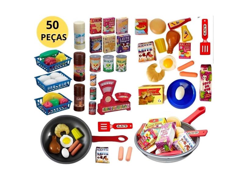 Kit mercadinho comidinhas de brinquedo infantil Cozinha Frutas legumes Mantimentos c/ Frigideira