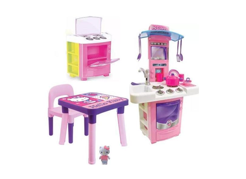 Mesa Hello Kitty Infantil Desmontável + Fogão E Big Cozinha - Monte Lí
