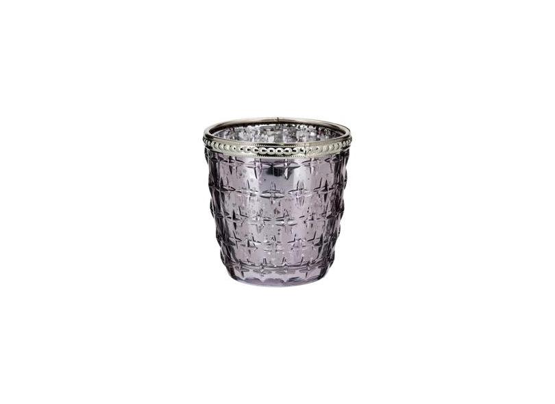 Castiçal Lustrado Vidro Lilás Temple 8X8X8Cm