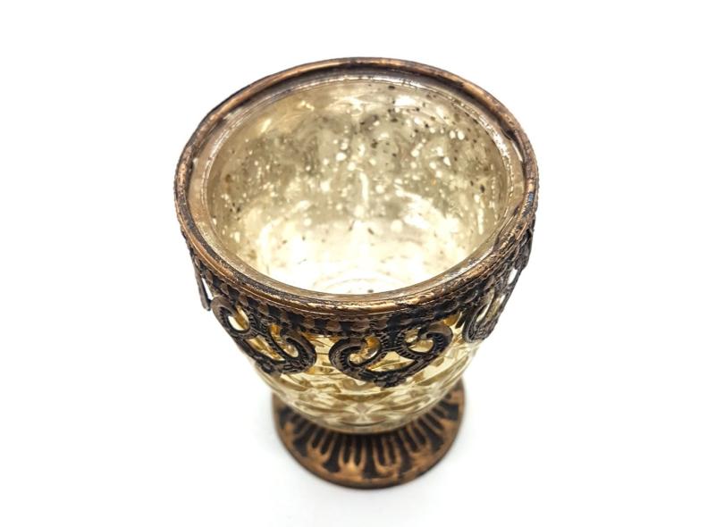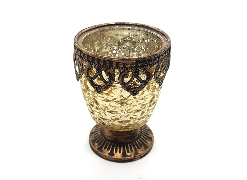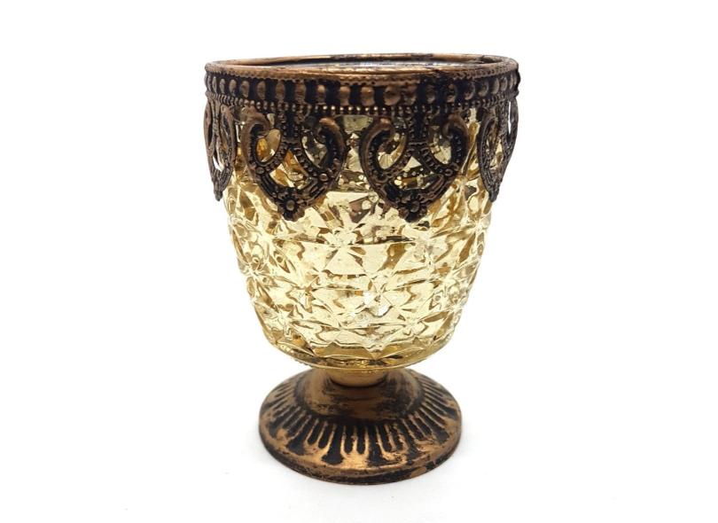 Castiçal Porta Velas Medieval em Vidro Vintage Gold C/ Base