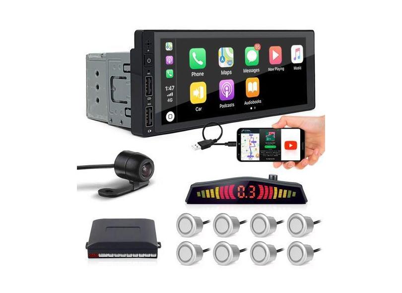 Kit Multimídia 1 Din + Câmera Ré + Sensor 8 Pontos Prata Golf 1999 200