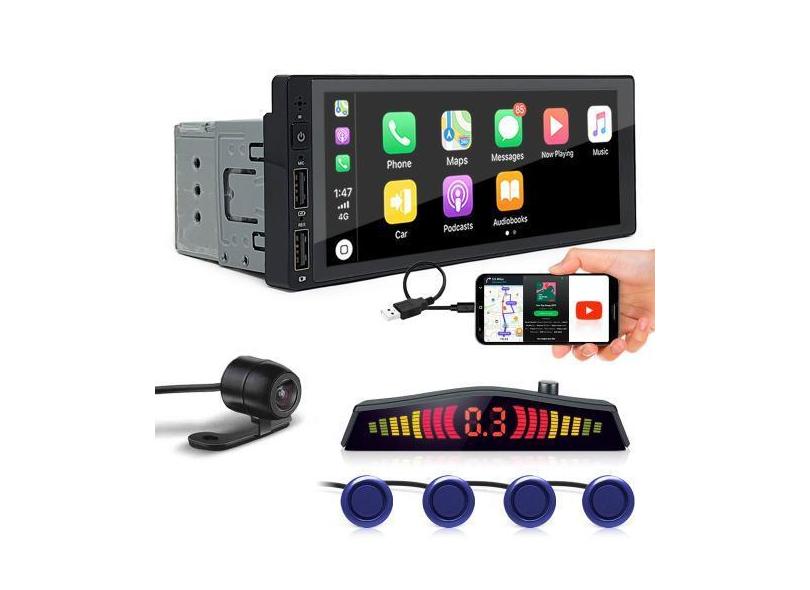 Kit Multimídia 1 Din + Câmera Ré + Sensor Ré Azul Golf 2010 2011 2012