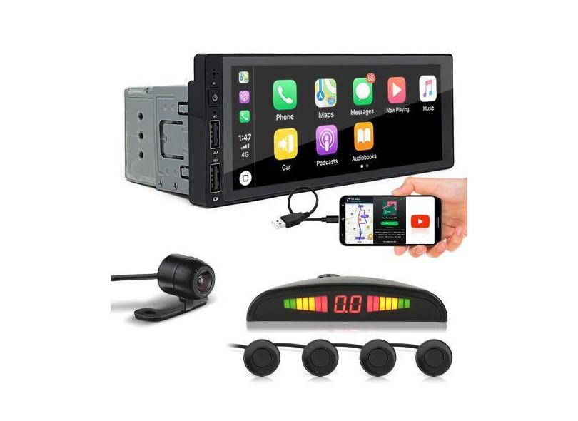Kit Multimídia 1 Din + Câmera Ré + Sensor Ré Preto Renault Logan 2011