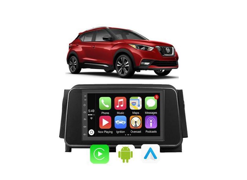 Kit Multimidia Android 7 Pol Kicks 2016 - 2022 CarPlay + Câmera e Mold