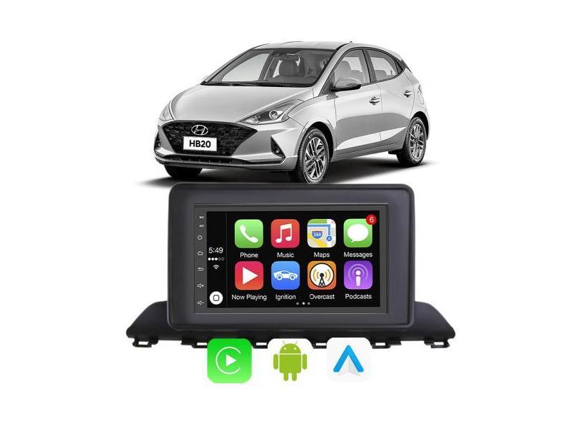 Kit Multimidia Android HB20 2020 - 2024 7 Pol Carplay + Moldura Painel