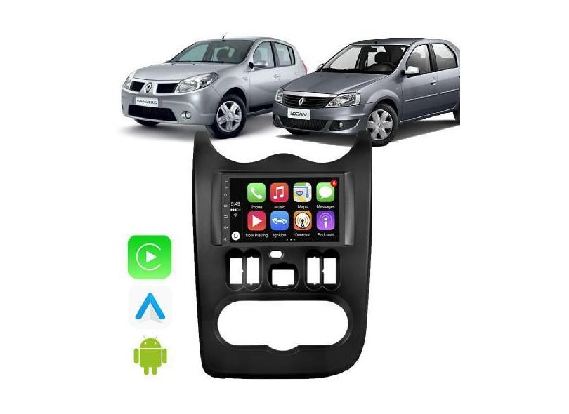 Kit Multimidia Android Sandero 2007-2011 7 Pol Carplay + Câmera de Ré