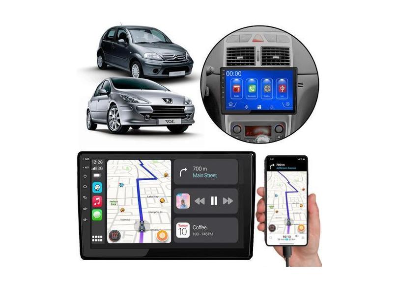 Kit Multimidia Carplay 9 Pol Peugeot 307 Citroen C3 MP5 + Câmera e Mol