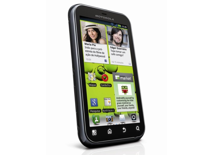 Como o sinal indica, esse Motorola Defy + é um plus na versão anterior. A resistência do modelo e sua durabilidade continuam as mesmas e são os maiores atrativos. A preocupação pode ser observada no display de 3,7 polegadas com tela, que traz a tecnologia Gorilla Glass, que previne contra arranhões, sujeiras e água. O design emborrachado não é dos mais sofisticados. Entretanto, o Defy+ deve estar mais preocupado com segurança. E o modelo robusto dá conta dessa exigência. O fabricante promete inacreditáveis 10 minutos debaixo d'água, o que pode fazer com que os usuários não se preocupem em pegar aquela chuva sem guarda-chuva ou deixe cair um copo de água ou refrigerante no aparelho. A principal atualização do modelo é o processador. Agora, o aparelho vem munido com processador de 1Ghz single Core. E o sistema operacional Android também sofreu upgrade para a versão 2.3 Gingerbread. A câmera é de adequados 5 megapixels com resolução de 2592x1944 pixels para fotos com LED Flash. Para vídeos, a resolução é HD (alta definição) com 720p. O Defy+ vem com capacidade de armazenamento de 2Gb, e acompanha cartão micro SD de 8GB. Se quiser mais, a memória é expansível para 32Gb. No quesito conectividade o Motorola Defy+ vem com GPS, para não deixar ninguém perdido pela cidade, Wi-Fi e 3G, para ter acesso ao Facebook e Twitter, além do Bluetooth para trocar arquivos com facilidade com outros celulares.