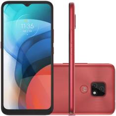 Smartphone Motorola Moto E E7 XT2095-1 4GB RAM 64GB Câmera Dupla é um smartphone da Motorola com o sistema operacional Android. A tela do celular é IPS LCD com 6.5", e resolução HD+. As medidas do modelo são 16.5cm de altura e 7.8cm de largura, com peso de 180.0g. O smartphone possui uma câmera frontal de 5.0 MP e um conjunto de câmeras na parte de trás, cada uma com 48.0 + 2.0 MP. Capaz de gravar em Full HD, a câmera também conta com as tecnologias Câmera Dupla, Flash, Autofoco, HDR. A bateria do Smartphone Motorola Moto E E7 XT2095-1 4GB RAM 64GB Câmera Dupla possui capacidade de 4000mAh. Este Moto E é equipado com o processador MediaTek Helio G25, que tem capacidade de 2.0GHz, 1.5GHz de processamento. Este dispositivo possui memória RAM de 4.0GB.