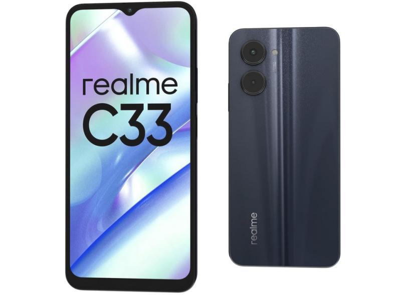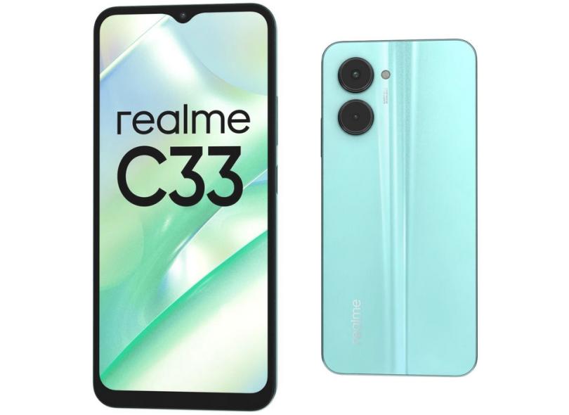 O Smartphone Realme C33 32GB conta com sistema operacional Android e é um modelo da Realme. A tela do celular conta com a tecnologia IPS LCD tem 6.5" com resolução HD+. Com 16.42cm de altura e 7.57cm de largura e com peso de 187.0g, o modelo pode ser uma pedida para você. O celular tem câmera frontal de 5.0 MP e um conjunto de sensores traseiros de 50.0 + 0.3 MP. Esse smartphone conta com uma câmera traseira que grava vídeos em Full HD, além de conter as tecnologias Autofoco, Flash, HDR. A bateria do Smartphone Realme C33 32GB possui capacidade de 5000mAh. Com o processador Unisoc Tiger T612, este Realme alcança até 1.8GHz de capacidade de processamento. O aparelho conta com memória RAM de 2.0GB.