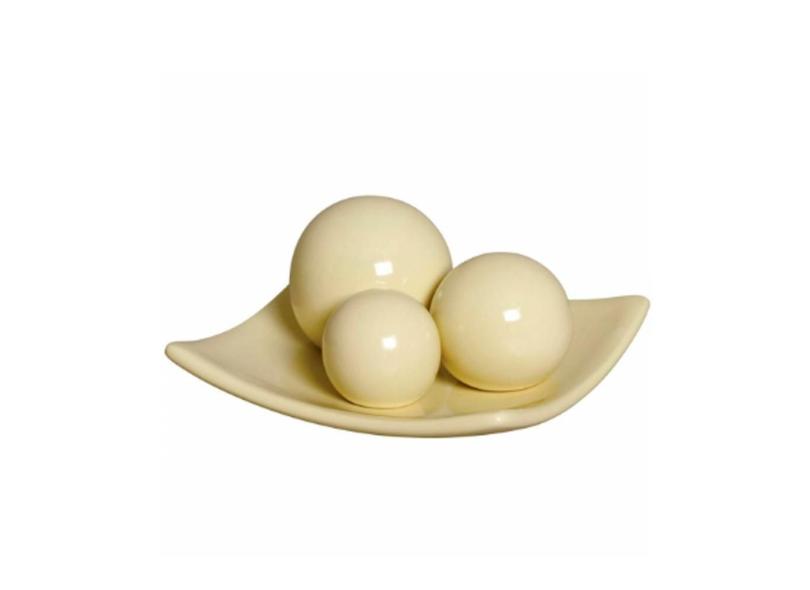 Centro De Mesa Prato 3 Esferas Em Cerâmica Bege