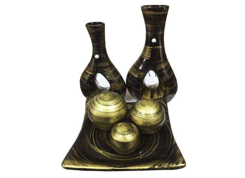 Centro Mesa Prato Decorativo 3 Bolas Enfeite Sala Ceramica Ouro